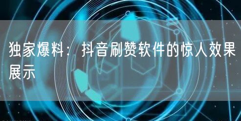 随着社交媒体的普及,抖音已成为众多网友展示自我、互动交流的重要平台。在这个充满竞争的环境里,如何脱颖而出,成为众多网友关注的焦点?一种名为“抖音刷赞软件”的神秘工具应运而生。今天,我们将为你独家爆料这款软件的惊人效果。