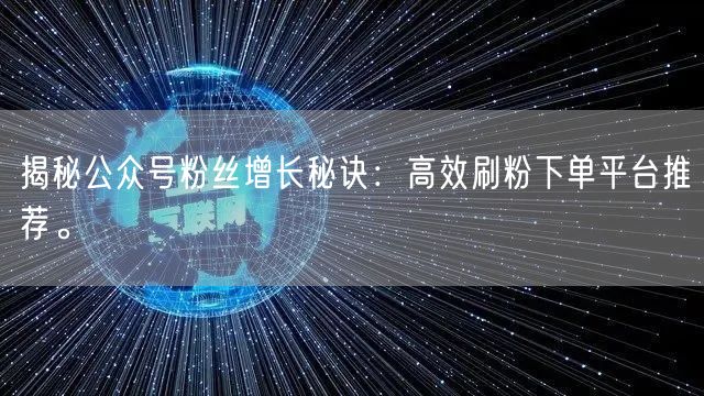 本文为您揭示公众号粉丝增长的秘密,为您推荐高效刷粉下单平台,提供专业的推荐和操作技巧,助您快速提升公众号粉丝数量,提升运营效果。