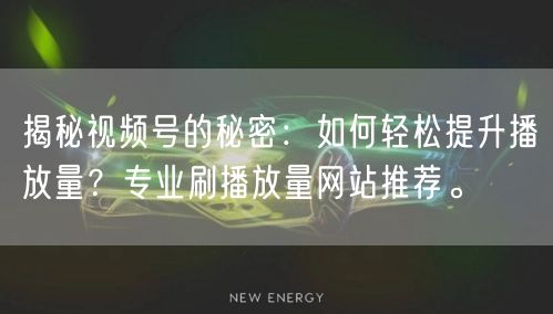 揭秘视频号的秘密:如何轻松提升播放量?专业刷播放量网站推荐。