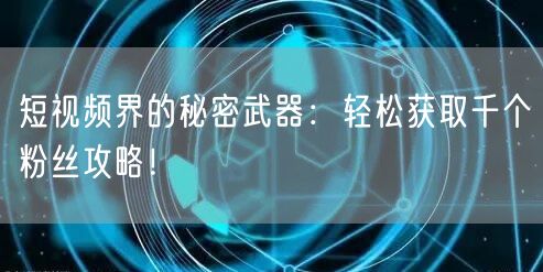 短视频界的秘密武器:轻松获取千个粉丝攻略!