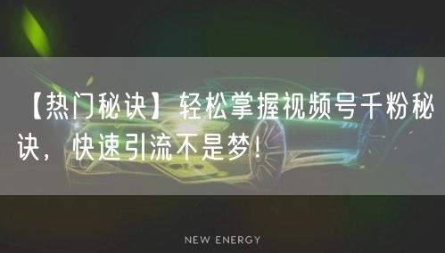 【热门秘诀】轻松掌握视频号千粉秘诀,快速引流不是梦!