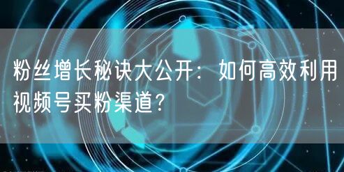 粉丝增长秘诀大公开:如何高效利用视频号买粉渠道?
