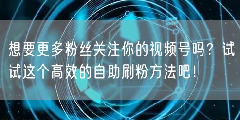 想要更多粉丝关注你的视频号吗?试试这个高效的自助刷粉方法吧!