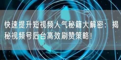 快速提升短视频人气秘籍大解密:揭秘视频号后台高效刷赞策略!