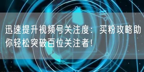 迅速提升视频号关注度:买粉攻略助你轻松突破百位关注者!