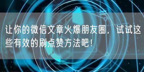 让你的微信文章火爆朋友圈,试试这些有效的刷点赞方法吧!