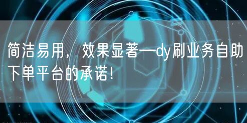 简洁易用,效果显著—dy刷业务自助下单平台的承诺!