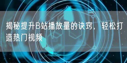 揭秘提升B站播放量的诀窍,轻松打造热门视频