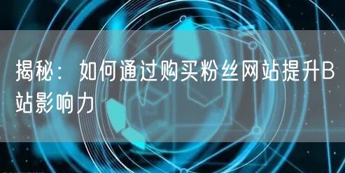 揭秘:如何通过购买粉丝网站提升B站影响力