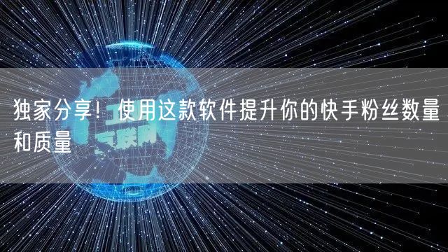 独家分享!使用这款软件提升你的快手粉丝数量和质量