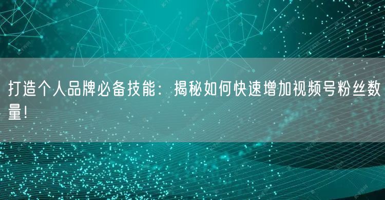 打造个人品牌必备技能:揭秘如何快速增加视频号粉丝数量!