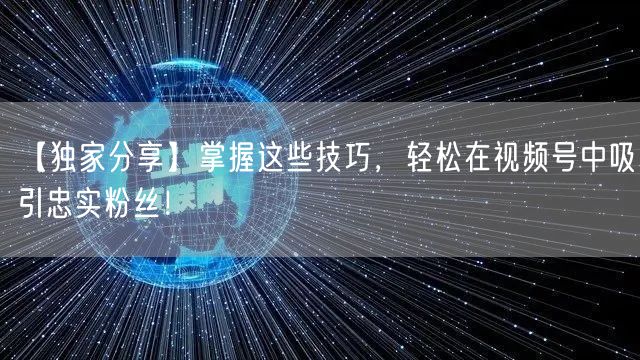 【独家分享】掌握这些技巧,轻松在视频号中吸引忠实粉丝!