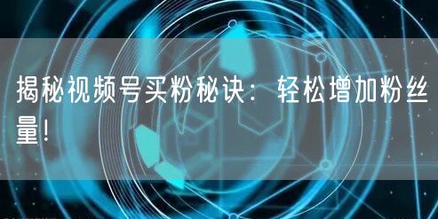 揭秘视频号买粉秘诀:轻松增加粉丝量!