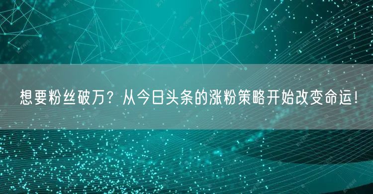 想要粉丝破万?从今日头条的涨粉策略开始改变命运!