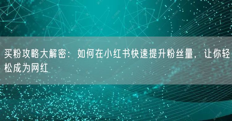 买粉攻略大解密:如何在小红书快速提升粉丝量,让你轻松成为网红