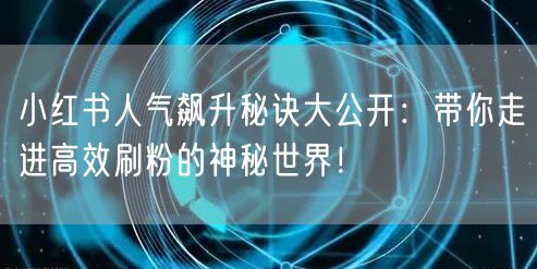 小红书人气飙升秘诀大公开:带你走进高效刷粉的神秘世界!